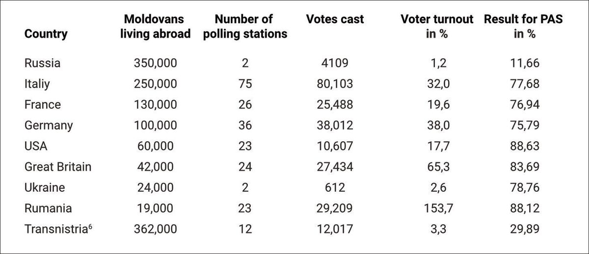 In national elections, all voters living abroad are also entitled to participate in the election. In the case of Moldova, this is a decisive factor in the election.