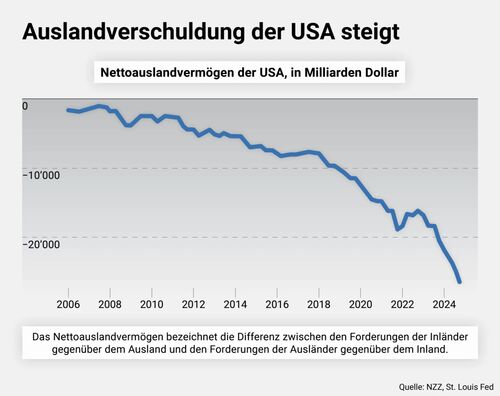 The US has long been importing from all over the world on credit, according to the motto “buy today, pay later”. These imports are financed with loans and dollar investments from abroad, mainly with Treasury bills (government bonds in dollars) and share purchases. For years, growing foreign debt has threatened to weaken the US. To the annoyance of Wall Street, the dollar has depreciated again, and the rating agencies have downgraded the credit rating of government debt (US Treasury bills). Trump’s strategic agenda is to curb imports through high import tariffs and to shift production from abroad back to the US. This is intended to limit foreign debt and provide additional funding for the treasury.