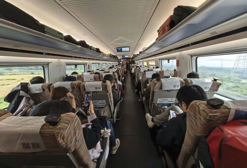 La capacité des trains est de 1000 à 2000 passagers, selon la configuration. Il existe différentes classes, des wagons-restaurants et, entre les deux, de petits buffets ainsi qu'un service assuré par du personnel ferroviaire vêtu d'uniformes similaires à ceux des avions. Voici un aperçu d'un wagon de deuxième classe: